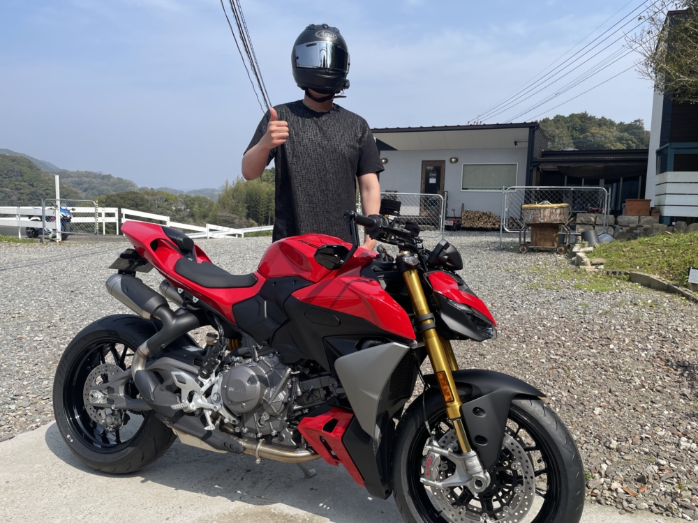 959panigaleからの乗り換えで最初は排気量もパワーも落としデスモを廃したV2Sにネガティブな思いもありましたが大幅な軽量化でさらに曲がるのが面白いパニガーレになったのかなぁと。実際納車日に少し走りましたが過去乗ってきたSS900ie、SS1000DS、V4R、959panigale、どのドゥカティより乗りやすくコーナーが速いだろうという片鱗を感じました!