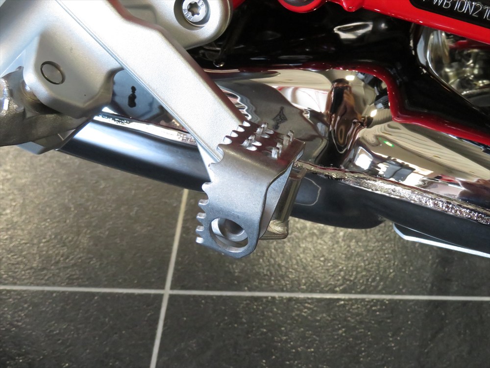 リアブレーキペダルには初めて見るタイプの切り替え機構が採用されています。