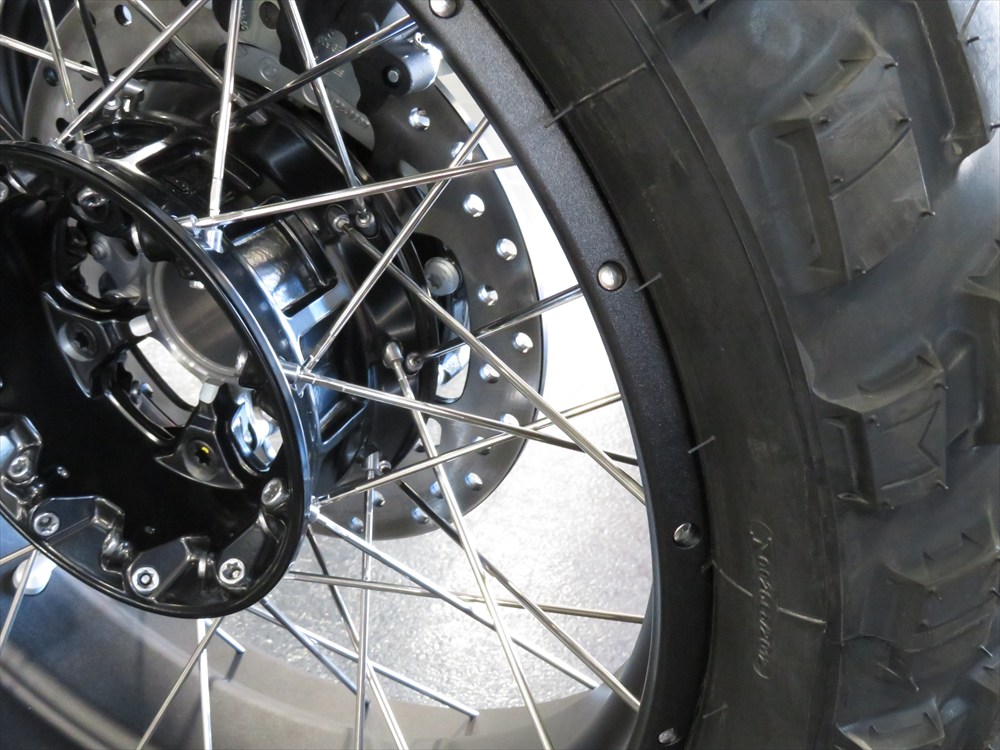 フロントホイールにはオフロードモデルの標準サイズである21インチを採用。